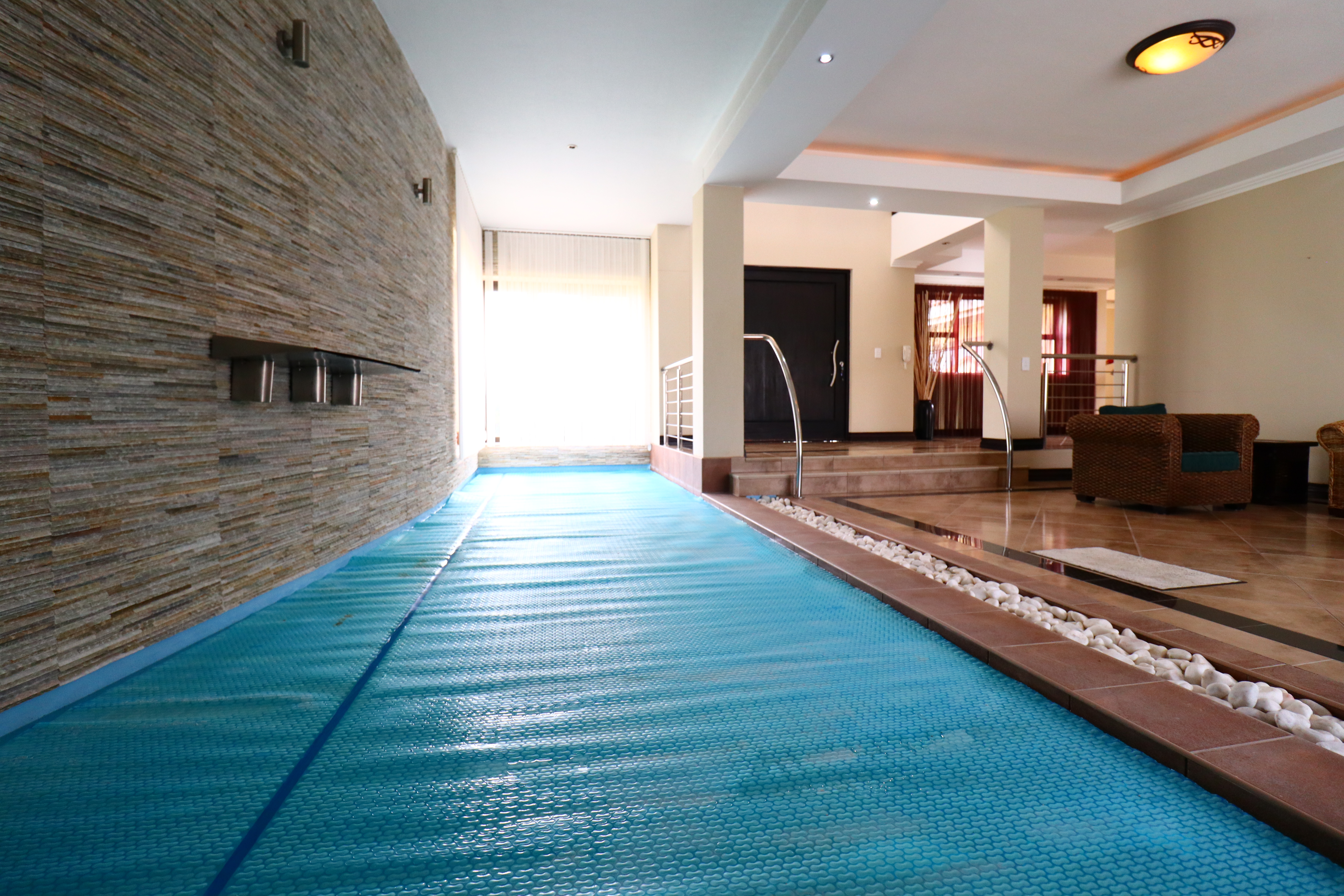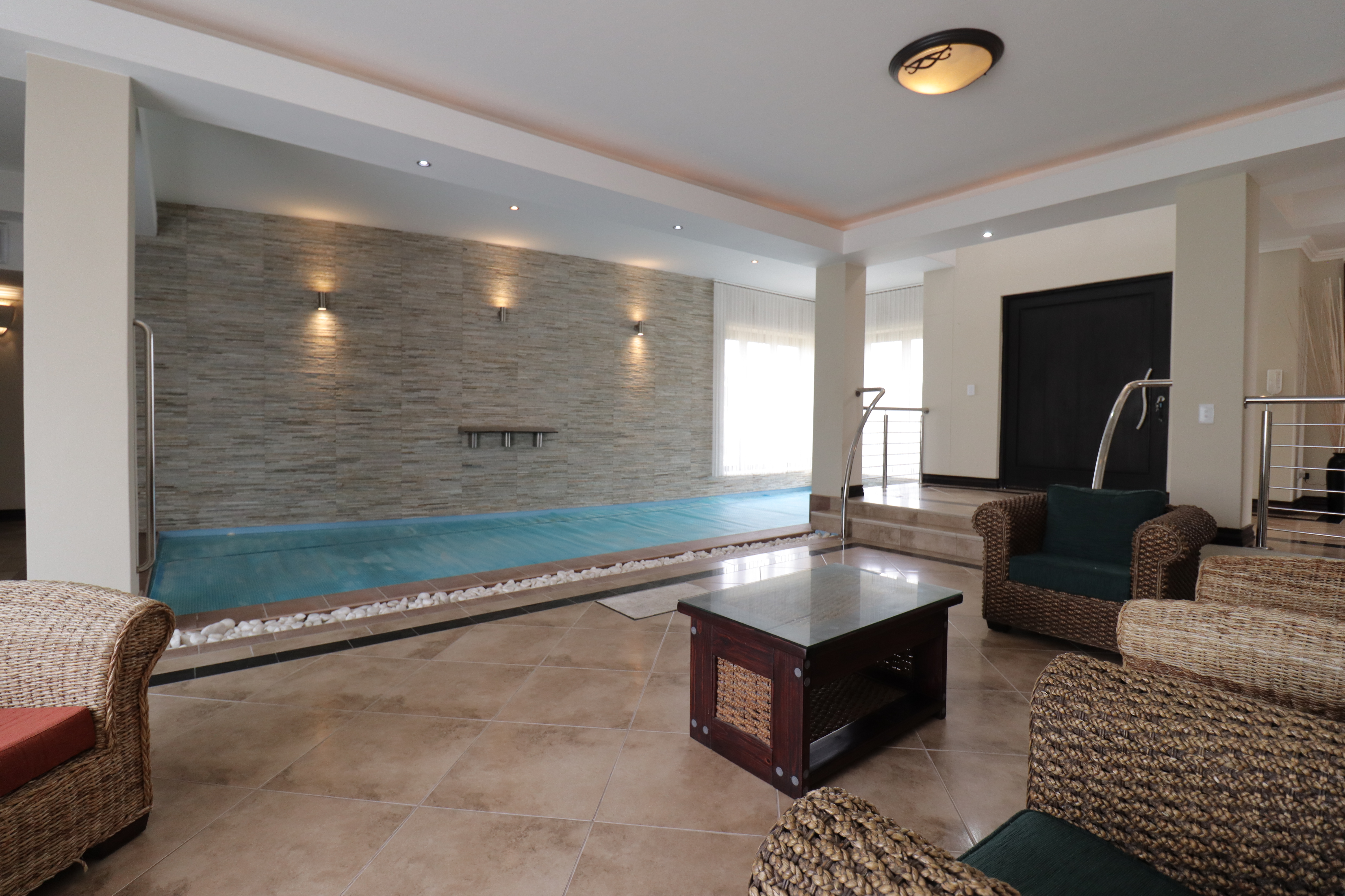 Step inside to discover striking entrance hall features that lead to an oasis of relaxation—an indoor heated pool and lounging area, beckoning you to unwind and rejuvenate in style.