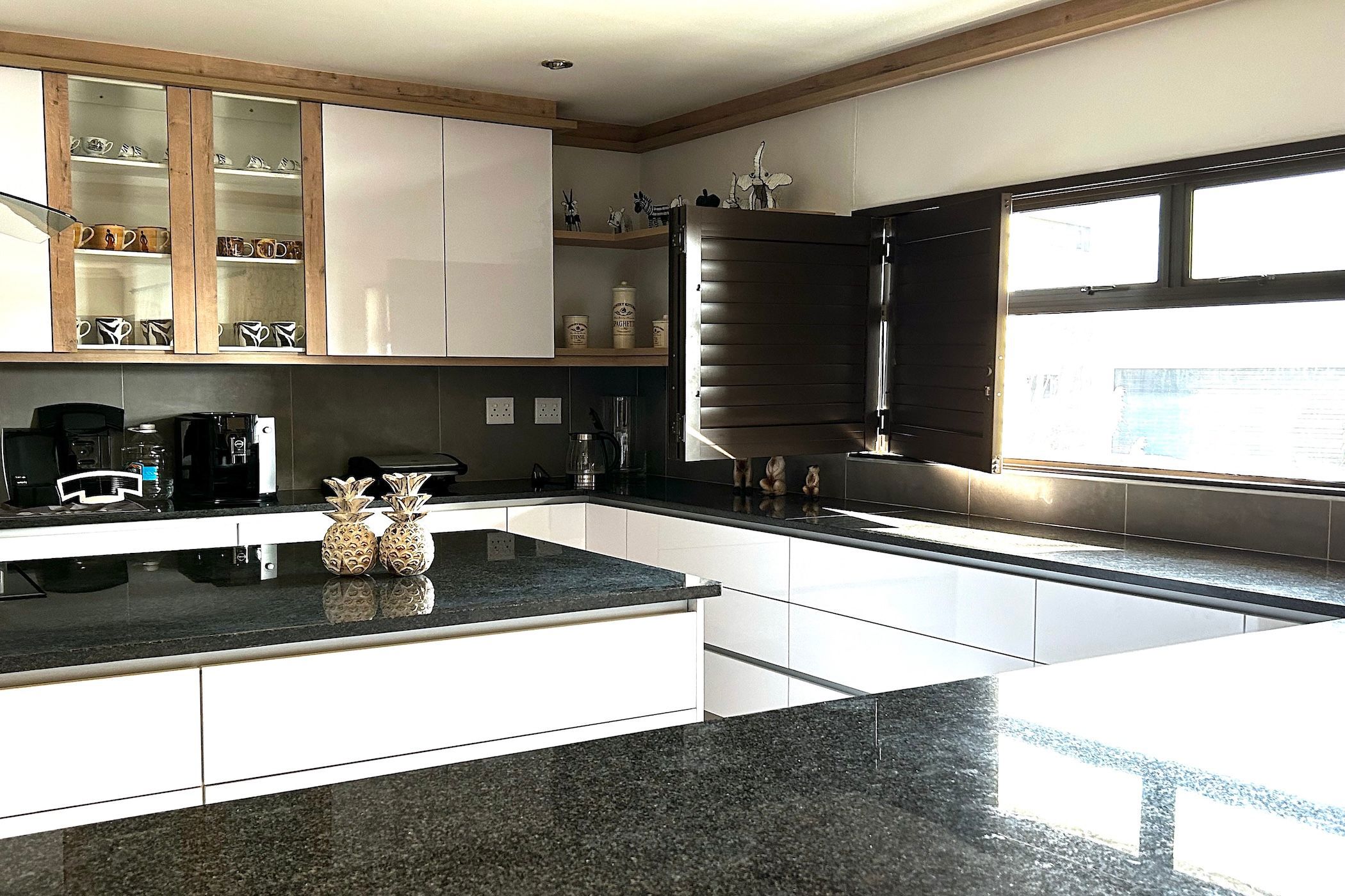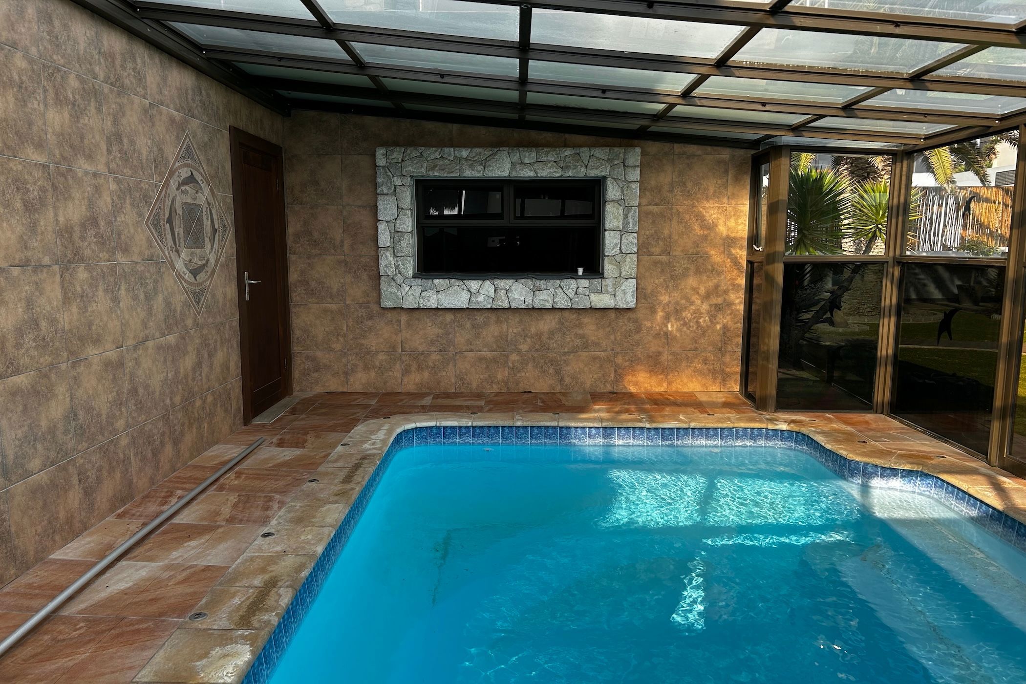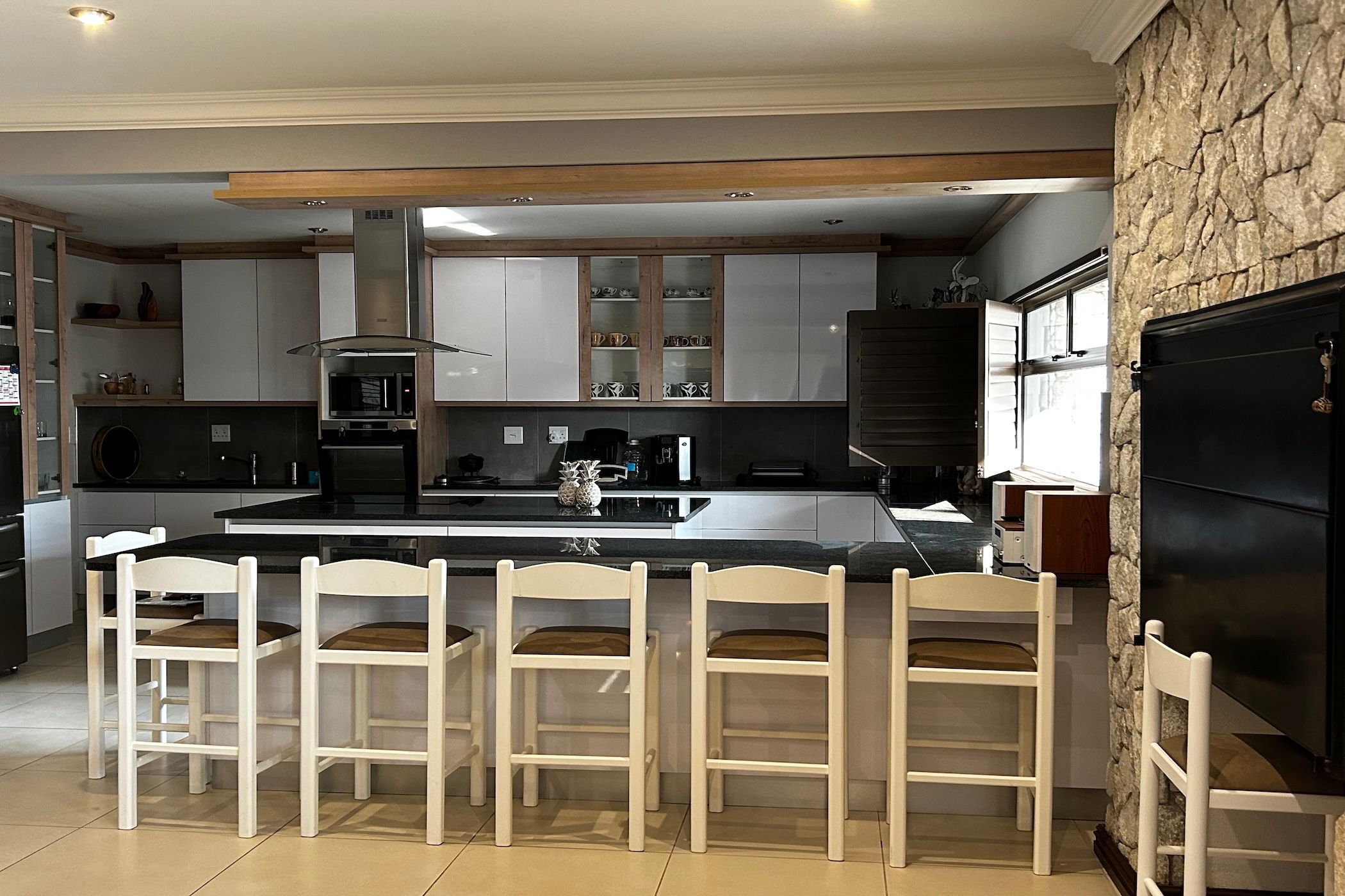 This exquisite four-bedroom, four-bathroom home boasts luxurious finishes throughout. The spacious open-plan living area features a modern kitchen with sleek granite countertops, a scullery, and a built-in BBQ—ideal for entertaining. Enjoy seamless indoor-outdoor living with an expansive patio, a cozy boma, and an outdoor BBQ area, perfect for hosting guests. The enclosed indoor pool, surrounded by glass, allows for a swim year-round, regardless of the season. Set in a prime location with easy access to the beach and close proximity to shopping centers, this home offers the ultimate convenience. The beautifully landscaped garden adds to the charm, making this property a true entertainer’s dream.