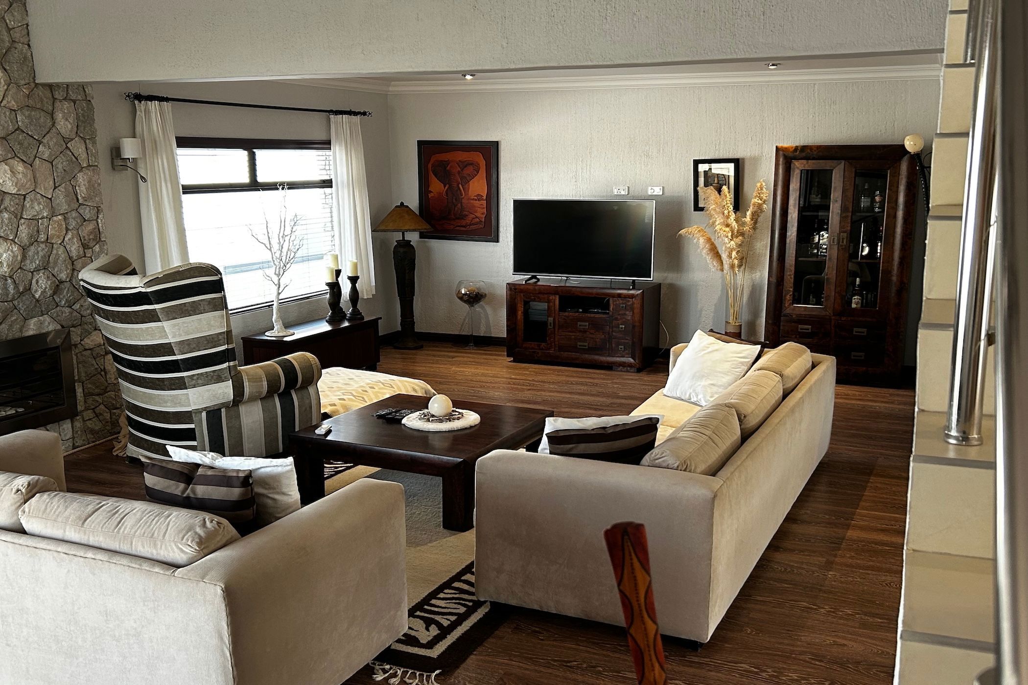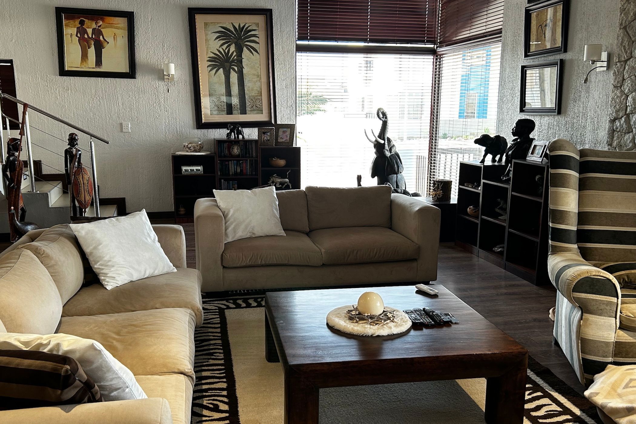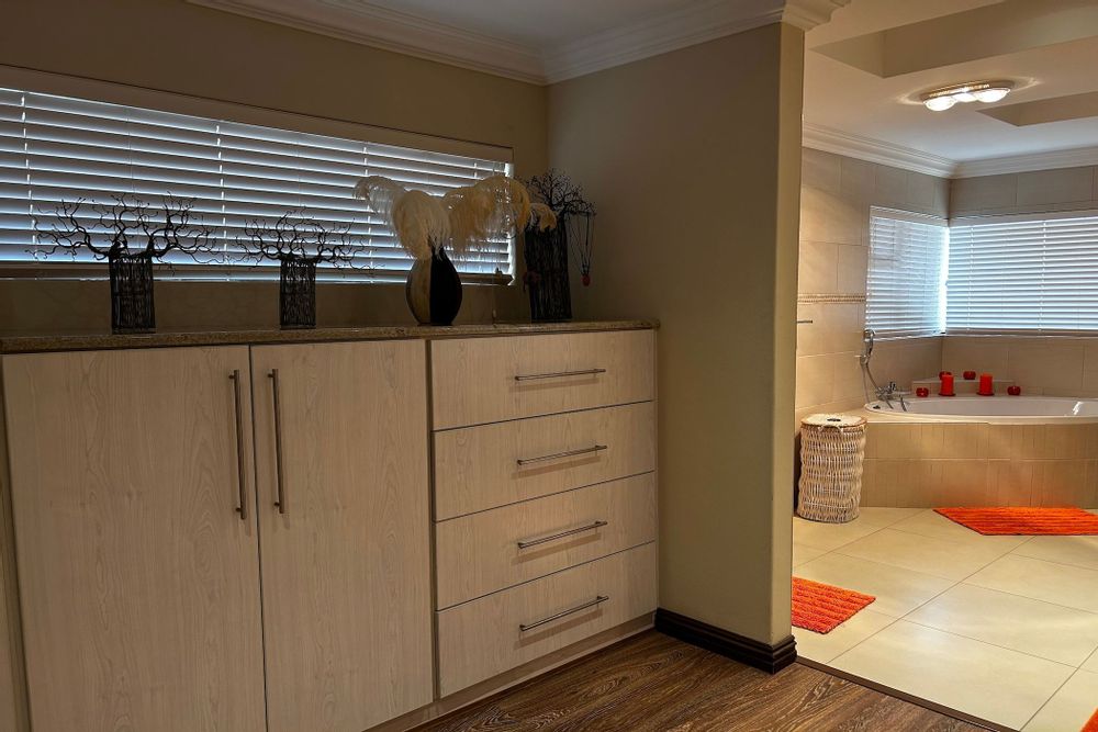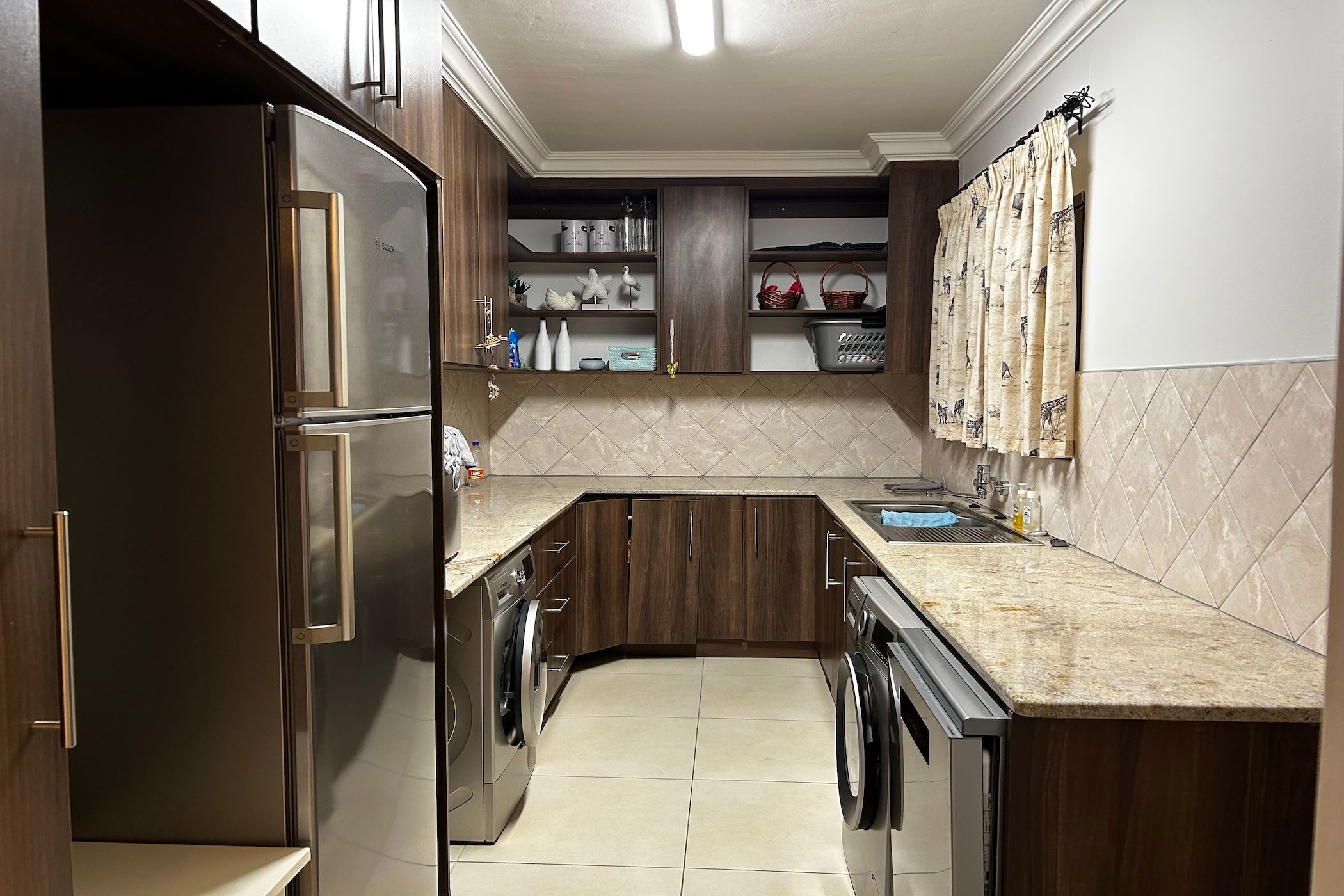 This exquisite four-bedroom, four-bathroom home boasts luxurious finishes throughout. The spacious open-plan living area features a modern kitchen with sleek granite countertops, a scullery, and a built-in BBQ—ideal for entertaining. Enjoy seamless indoor-outdoor living with an expansive patio, a cozy boma, and an outdoor BBQ area, perfect for hosting guests. The enclosed indoor pool, surrounded by glass, allows for a swim year-round, regardless of the season. Set in a prime location with easy access to the beach and close proximity to shopping centers, this home offers the ultimate convenience. The beautifully landscaped garden adds to the charm, making this property a true entertainer’s dream.