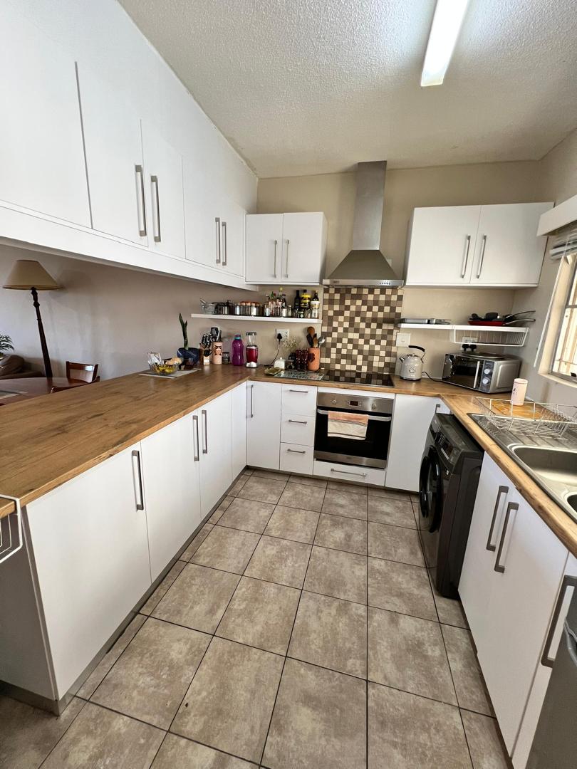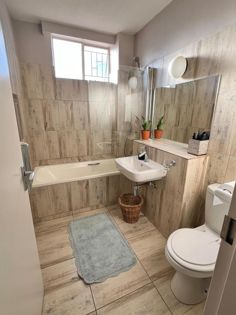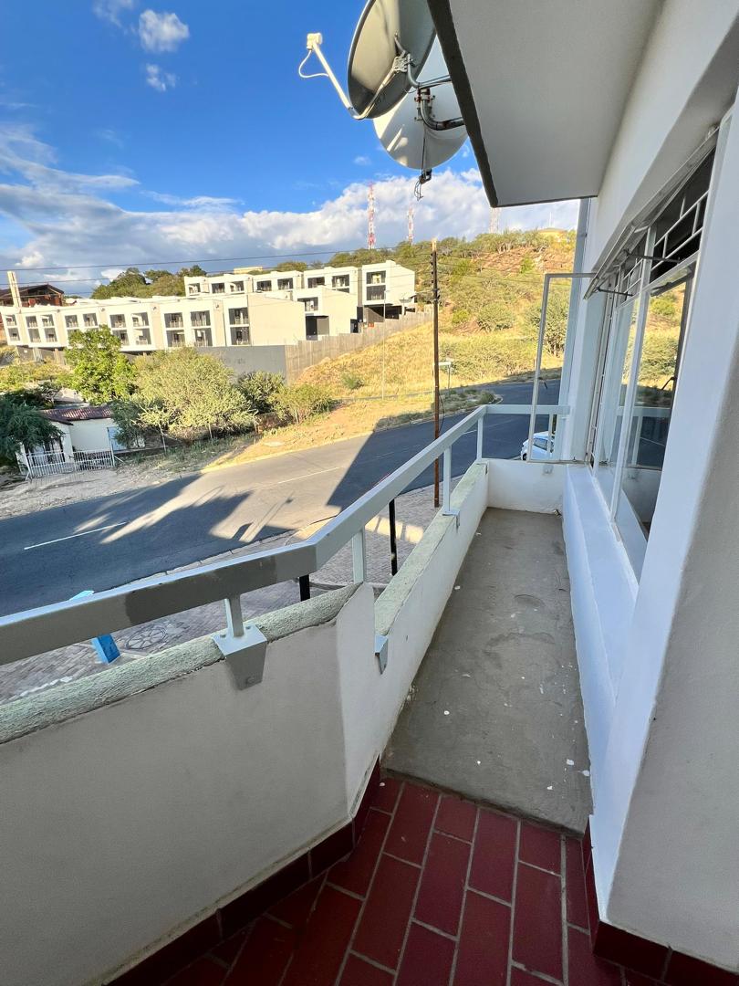 To let in Uhland Heights, Klein Windhoek. This fully furnished two bedroom, two bathroom apartment offers comfortable and secure living in a sought after location.