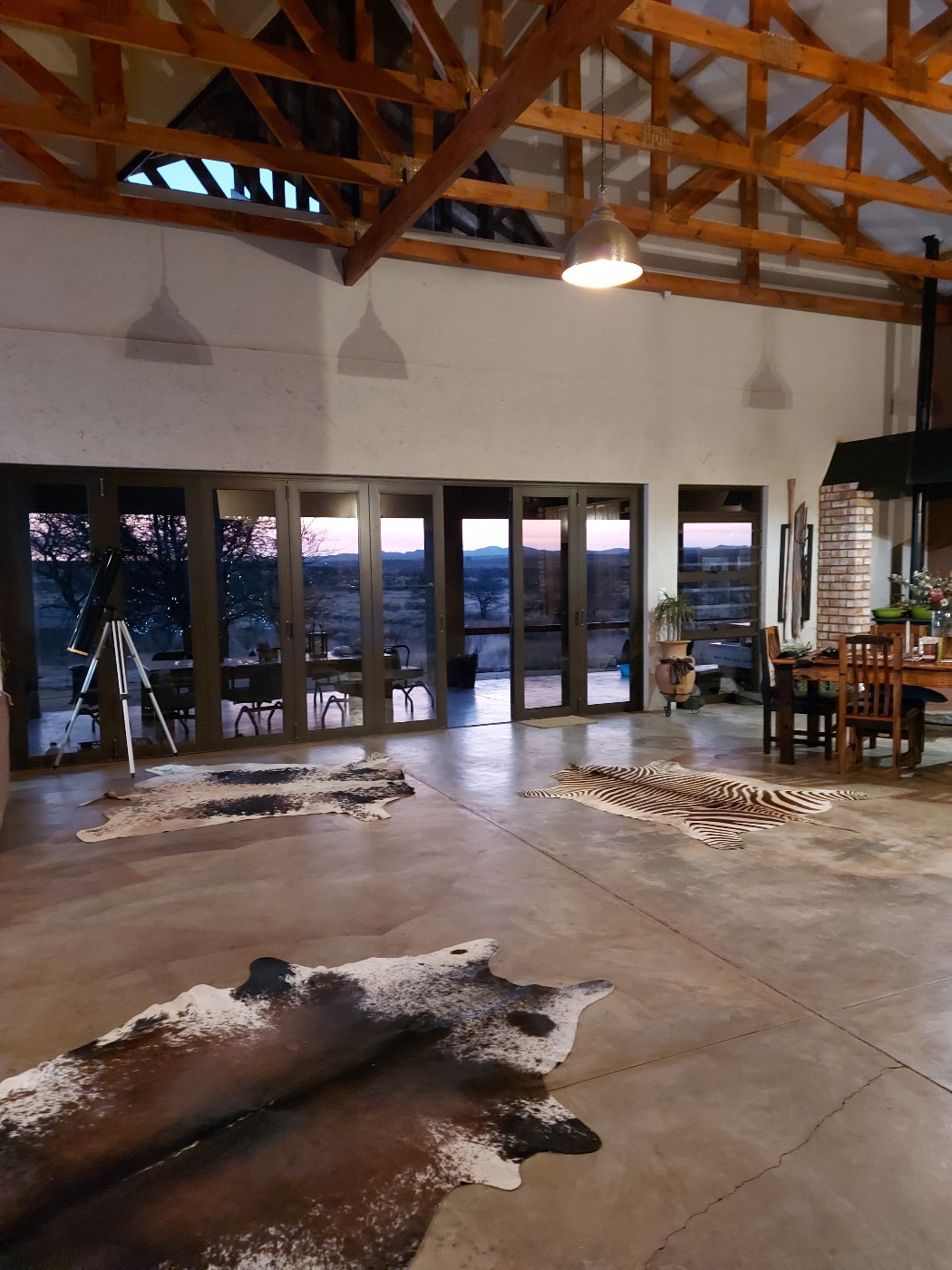 If you are dreaming of living a self-sustaining, off the grid lifestyle in a safe and tranquil location, this property will make your dreams come true. Located in close proximity to Hosea Kutako International Airport on a Lifestyle Estate this property offers exceptional views and will connect you with the natural surroundings.The property is developed to be completely off the grid with it's own borehole, solar power system with inverter large enough to power all the appliances and equipment you will need. The main dwelling is a large farm style home offering spacious indoor and outdoor entertainment areas, two large ensuite bedrooms, a study, scullery and laundry. Both the bedrooms are open style with walk in dressing rooms and full bathrooms. The main bedroom has his and her bathrooms with sliding doors leading to a private garden with outside shower. Both bedrooms open onto the covered stoep with beautiful views connected to a large lush garden. The property has all the facilities you can dream of and include a bore hole with solar pump, solar power system with 7KVA inverter, 35 000 liter water storage tanks, an outdoor kitchen, a chicken coupe, a large shed, a cold room, a 1 000 liter wood fired hot water geyser, workers accommodation, a vineyard and nursery. The commercial size nursery is 2500m2 in size, is covered for protection against the elements and nature and is watered through an automated hydroponic system. The property is CC registered and it's size allows for further development.