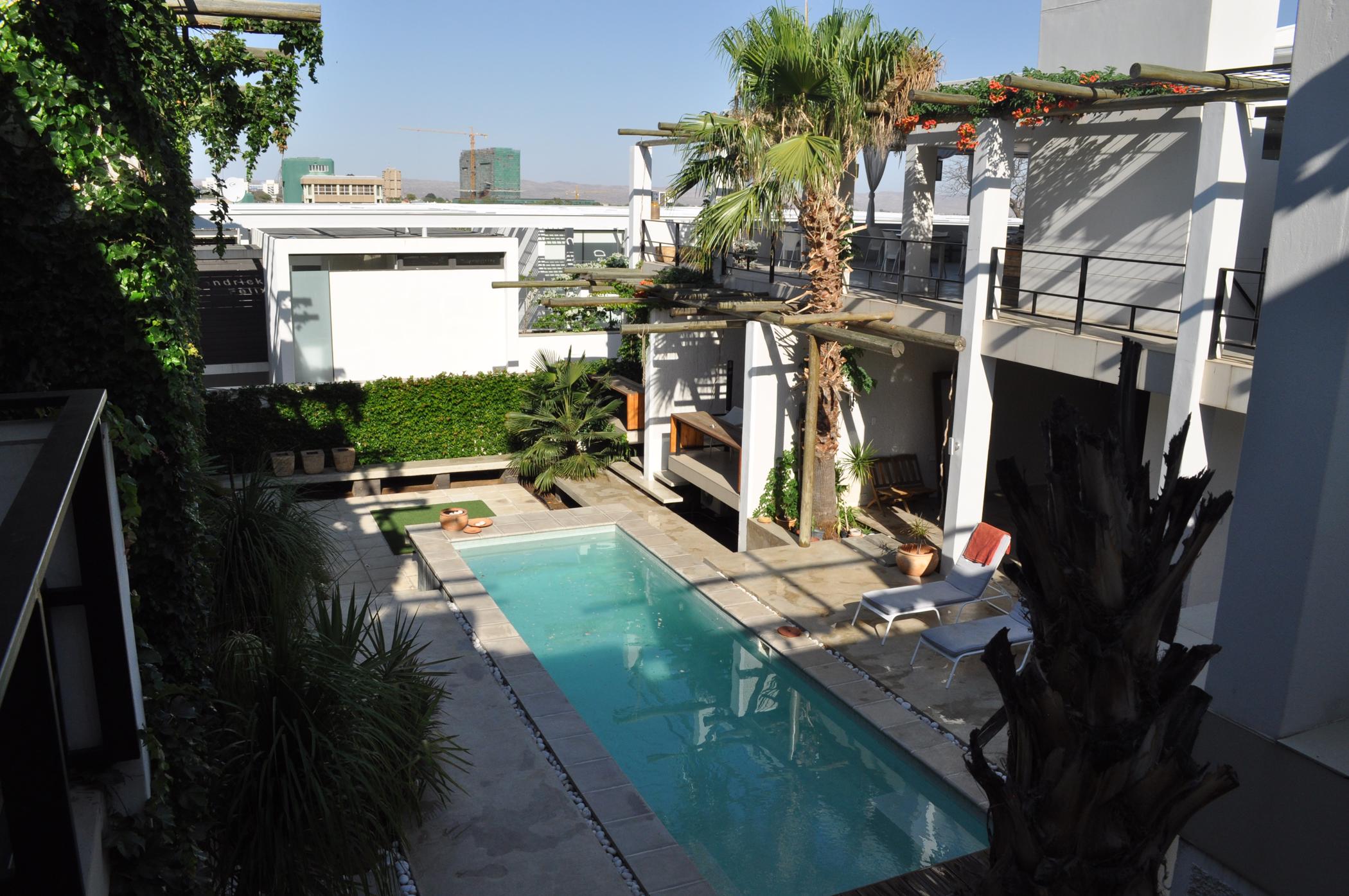 You couldn't ask for better views in all of Windhoek. This guesthouse is very strategically situated in the heart of Windhoek within walking distance to numerous restaurants and the CBD. 14 Spacious double bedrooms, all en suite of which two are self-catering, ideal for families. The Manager's residence is separate to the house and the lounge and dining area are used by the guests. Enjoy fantastic sundowners from the spacious patio with a bar and braai area for guest's to feel at home. The guesthouse has ample store areas, a laundry, ironing room and linen room, 11 secure garages and it has 2 solar systems.