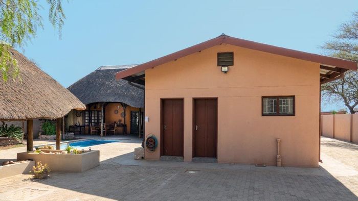 Rustic 3-bedroom home with modern amenities, solar power, security features, large garden, and pool, priced at N$3,150,000.