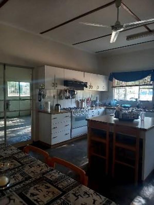 Spacious property in Omaruru with versatile layout, outbuilding with 4 bedrooms, communal kitchen, storage room, and veranda. Convenient location.