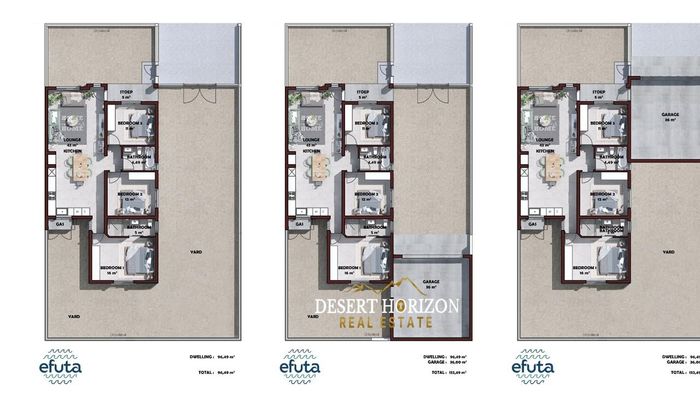 Three 3-bedroom, 2-bathroom units available in Tamariskia, Swakopmund; sizes range from 90.30 sqm to 120.2 sqm.