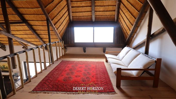 Enjoy rural estate living 20 km from Swakopmund on 10 hectares, with pool, vast entertainment areas and five horse stables — includes three en-suite bedrooms and double garage.