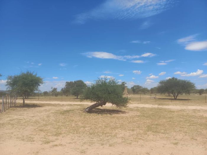 Smallholding with waterhole, fenced estate, and livestock permitted; 30 km from Okahandja towards Karibib. Foreign investment allowed.
