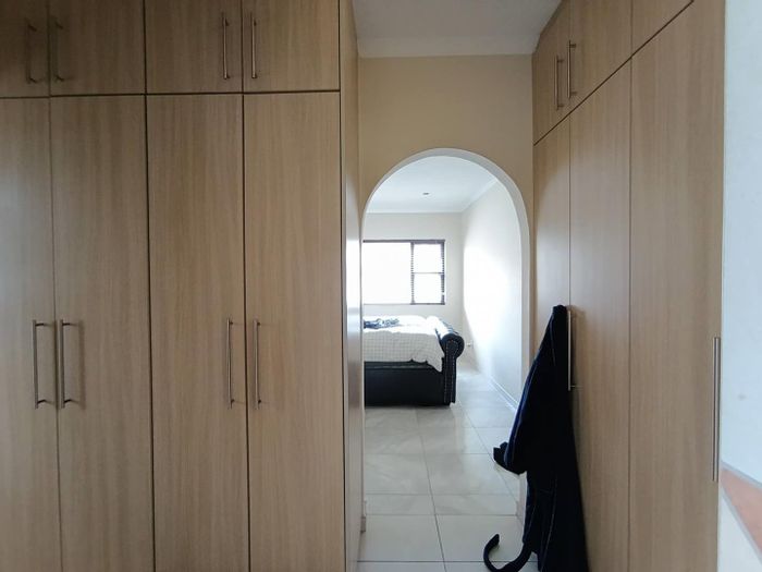Coastal living steps from Dolphin Beach — open-plan townhouse with built-in braai, outdoor deck and private balcony with sea glimpses; front courtyard garden. Three beds, two baths and garage.